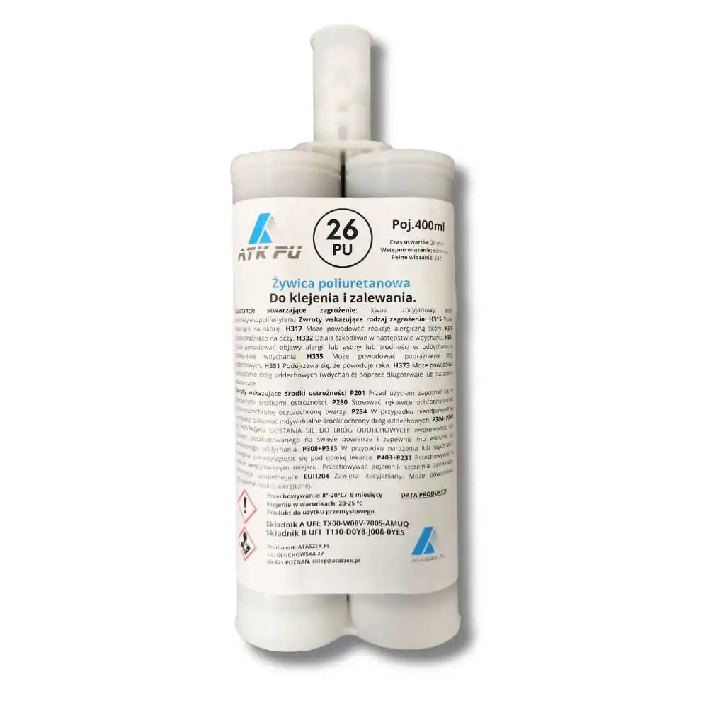 Uszczelniacz poliuretanowy zazwyczaj ma gęstszą konsystencję i dłuższy czas wiązania. ATK PU26 to rzadka żywica poliuretanowa do betonu, która głęboko penetruje podłoże i wiąże wstępnie już po 90 minutach.
