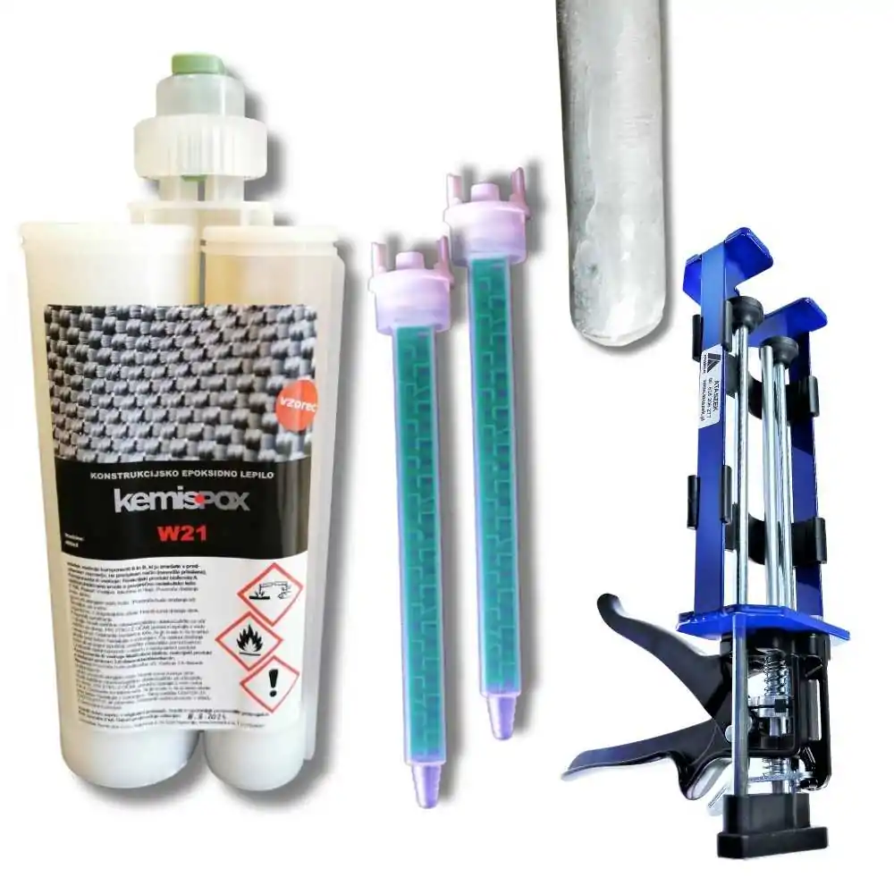- W odróżnieniu od silikonów, Kemispox W21 ma wielokrotnie wyższą siłę klejenia i nadaje się do napraw konstrukcyjnych, nie tylko uszczelniających