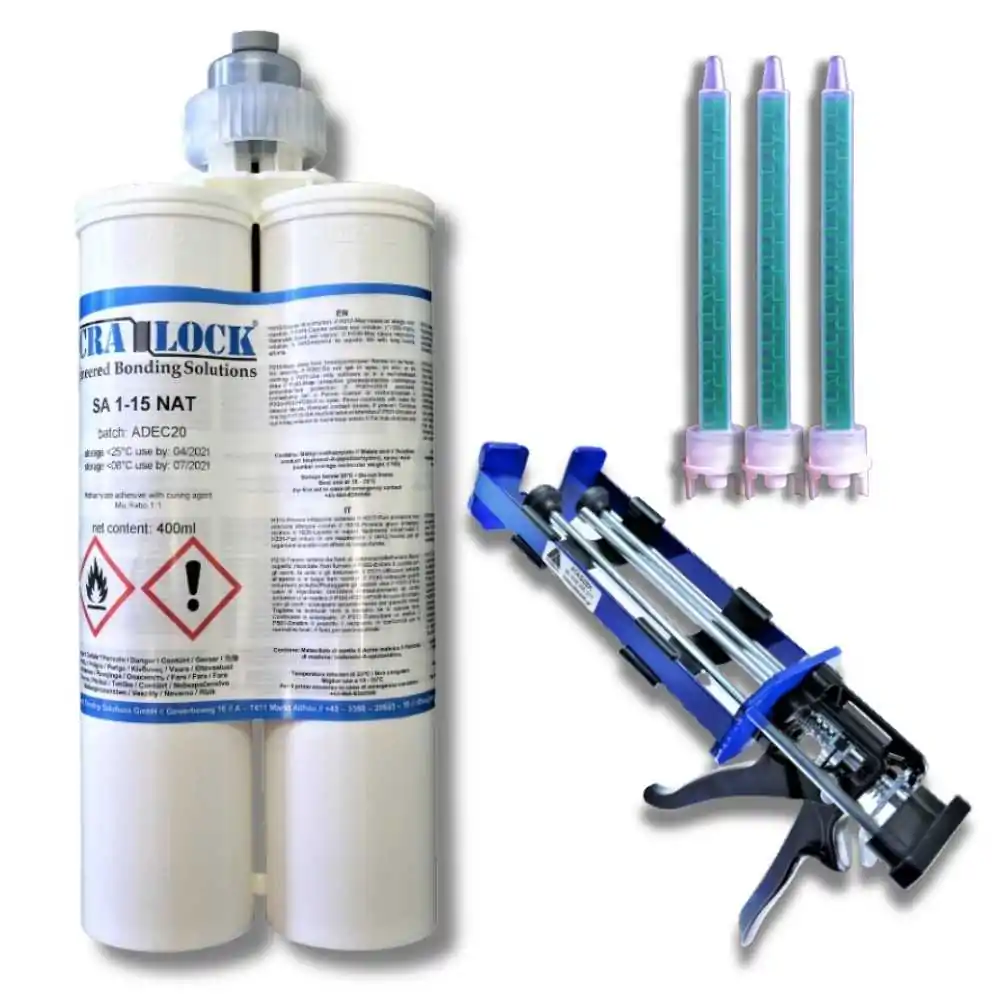 - W odróżnieniu od żywic poliestrowych czy epoksydowych stosowanych jako kleje, Acralock SA 1-15 jest znacznie bardziej elastyczny (do 75% wydłużenia), co zapobiega pękaniu spoiny na skutek drgań i naprężeń.