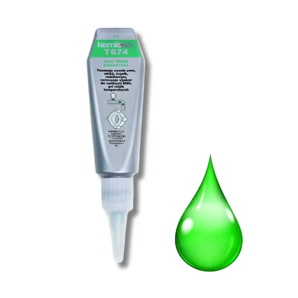 - W przeciwieństwie do standardowych klejów anaerobowych, T674 oferuje ekstremalną odporność termiczną aż do 250°C, podczas gdy większość produktów marketowych traci właściwości już przy 150°C