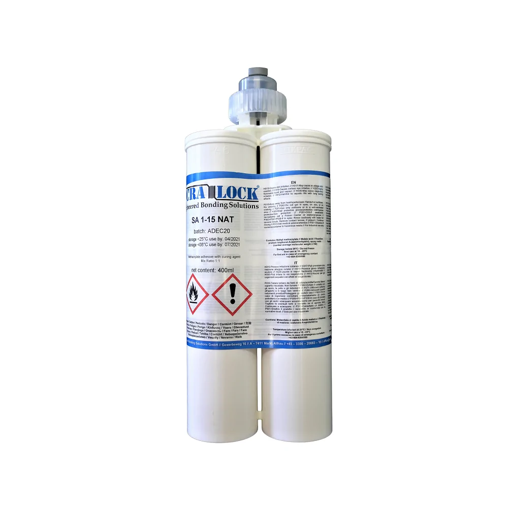 Klej 1-15 NAT zastępuje spawanie, skręcanie czy nitowanie - dzięki odporności kleju na podwyższone temperatury klejone elementy z aluminium i stali możemy poddawać lakierowaniu proszkowemu. Ta wersja kleju jest także zalecana do poliamidów. Można kleić tu zarówno małe jak i duże elementy. Mała ilość kleju między powierzchniami powoduje, iż jest on bardzo wydajny. Można także wykonywać połączenia z kompozytów łącząc z innymi tworzywami i metalami.