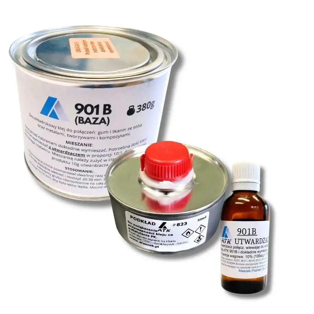 ATK 901b to profesjonalny, dwuskładnikowy klej kontaktowy stworzony z myślą o najbardziej wymagających zastosowaniach przemysłowych. Zapewnia niezwykle mocne i elastyczne połączenia gumy z metalami, betonem czy drewnem. Jest to idealne rozwiązanie do naprawy taśmociągów, klejenia mat wygłuszających i innych aplikacji, gdzie liczy się niezawodność i trwałość.